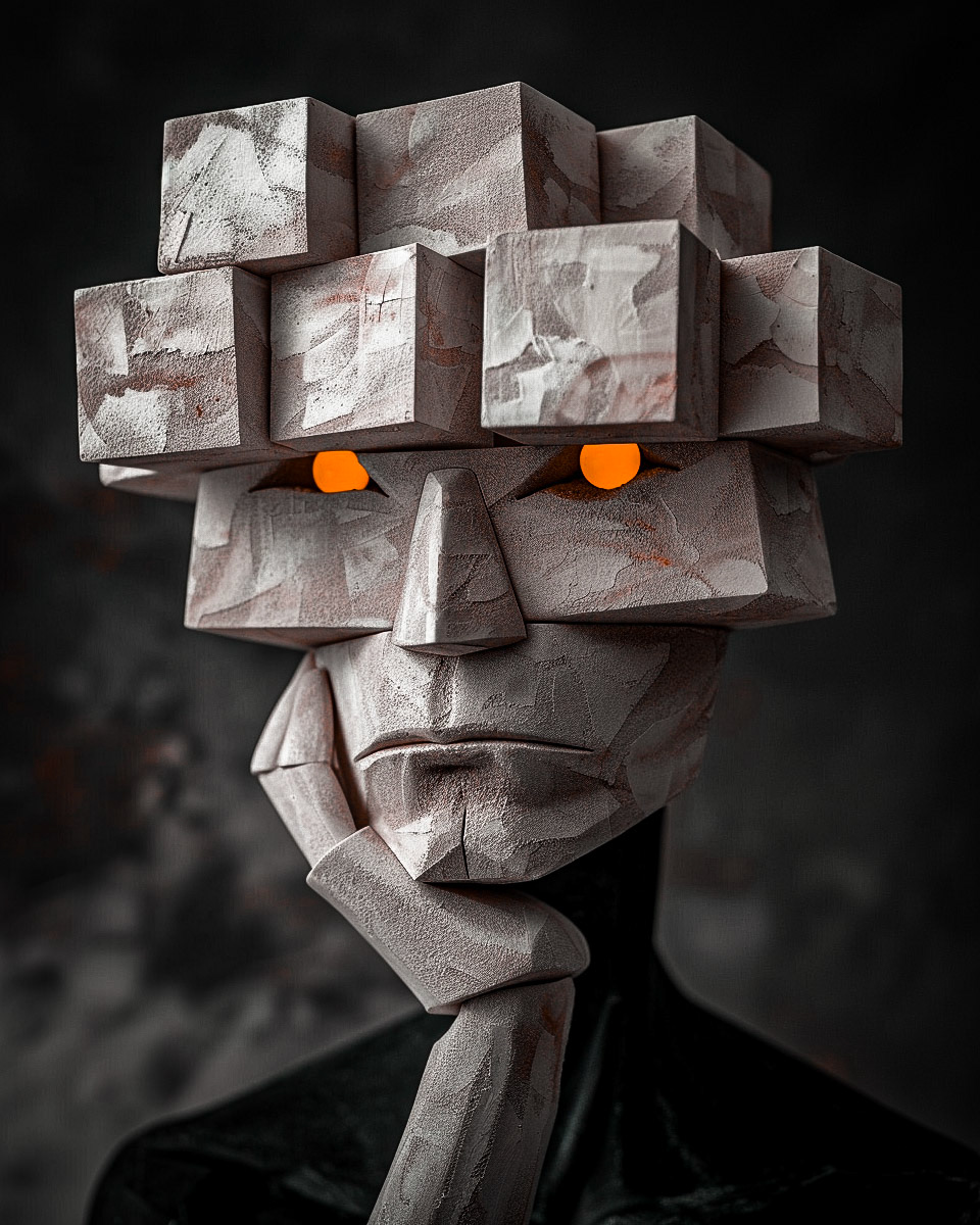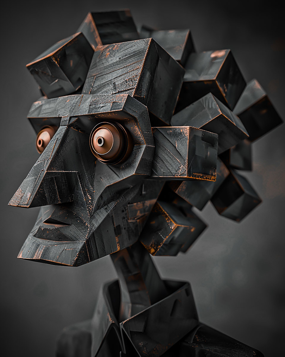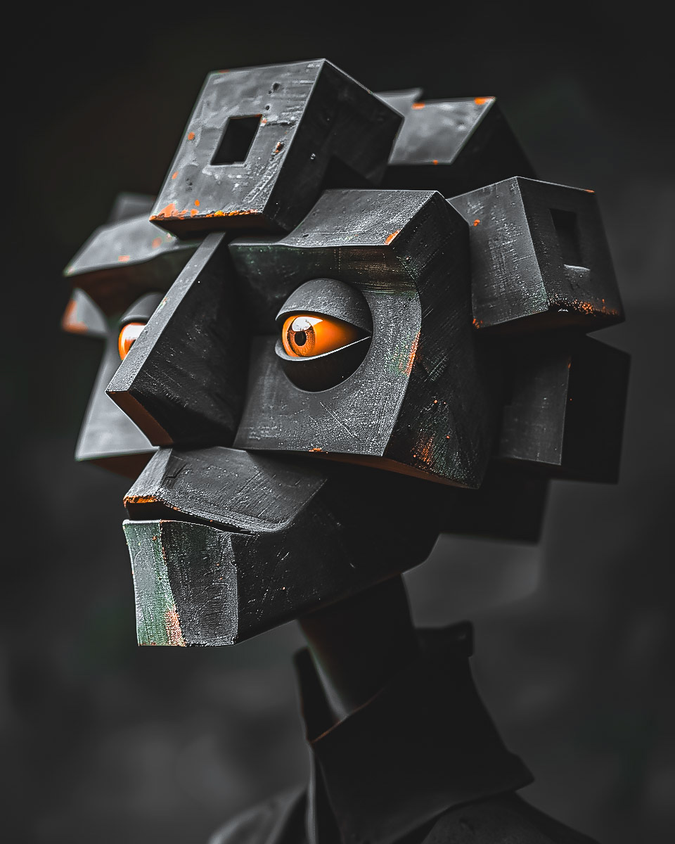 Sculpted cubes and angles depict the multifaceted nature of identity