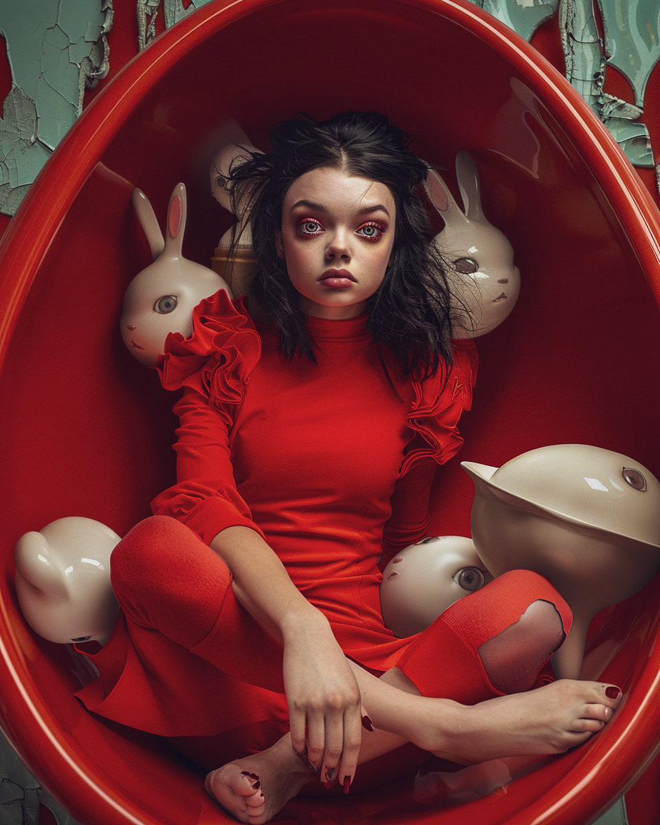 A symphony of scarlet shadows dances with whispers of unspoken truths, entwined in enigmatic elegance.