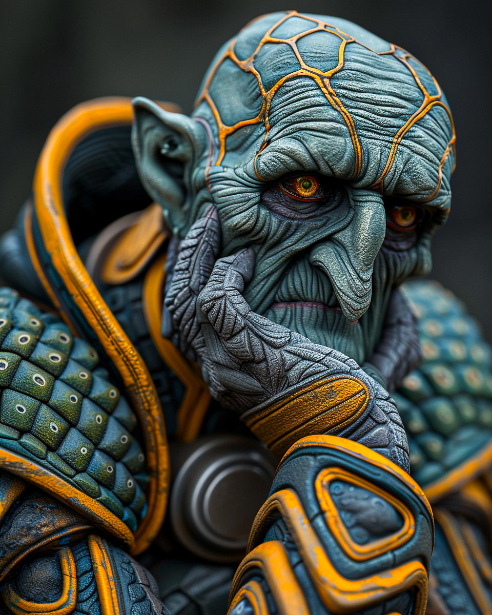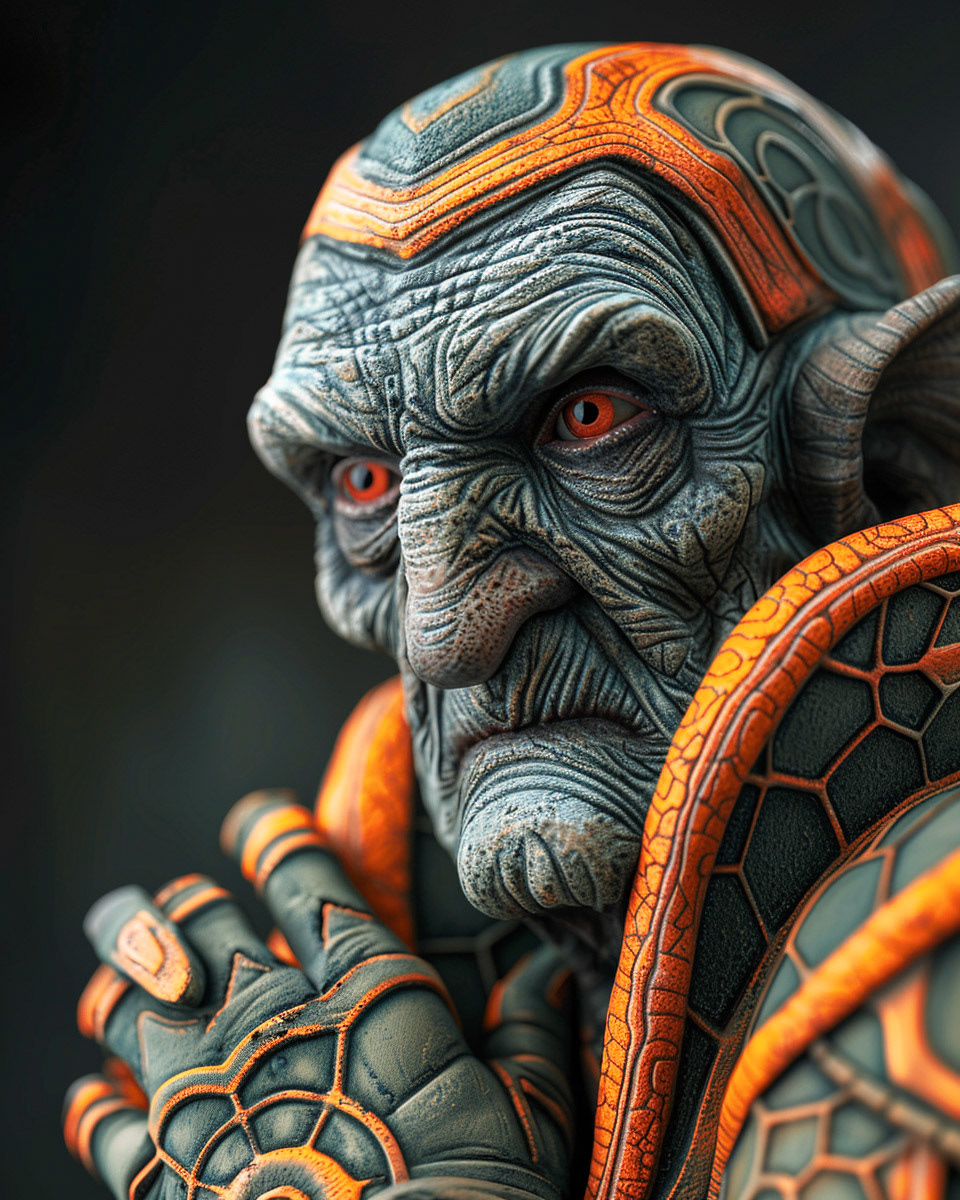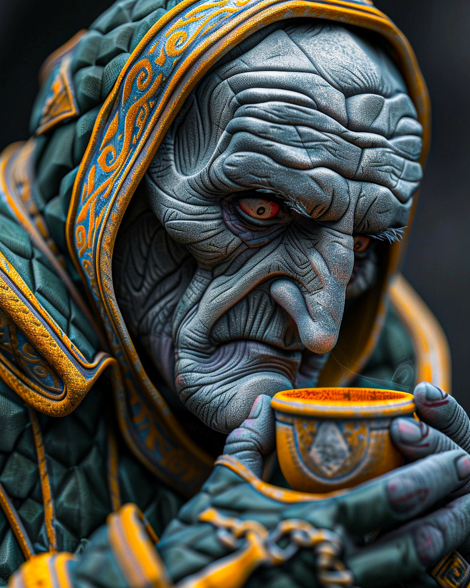 Mysterious figures stand in silence, their eyes tracing the passage of time and the weight of knowledge.